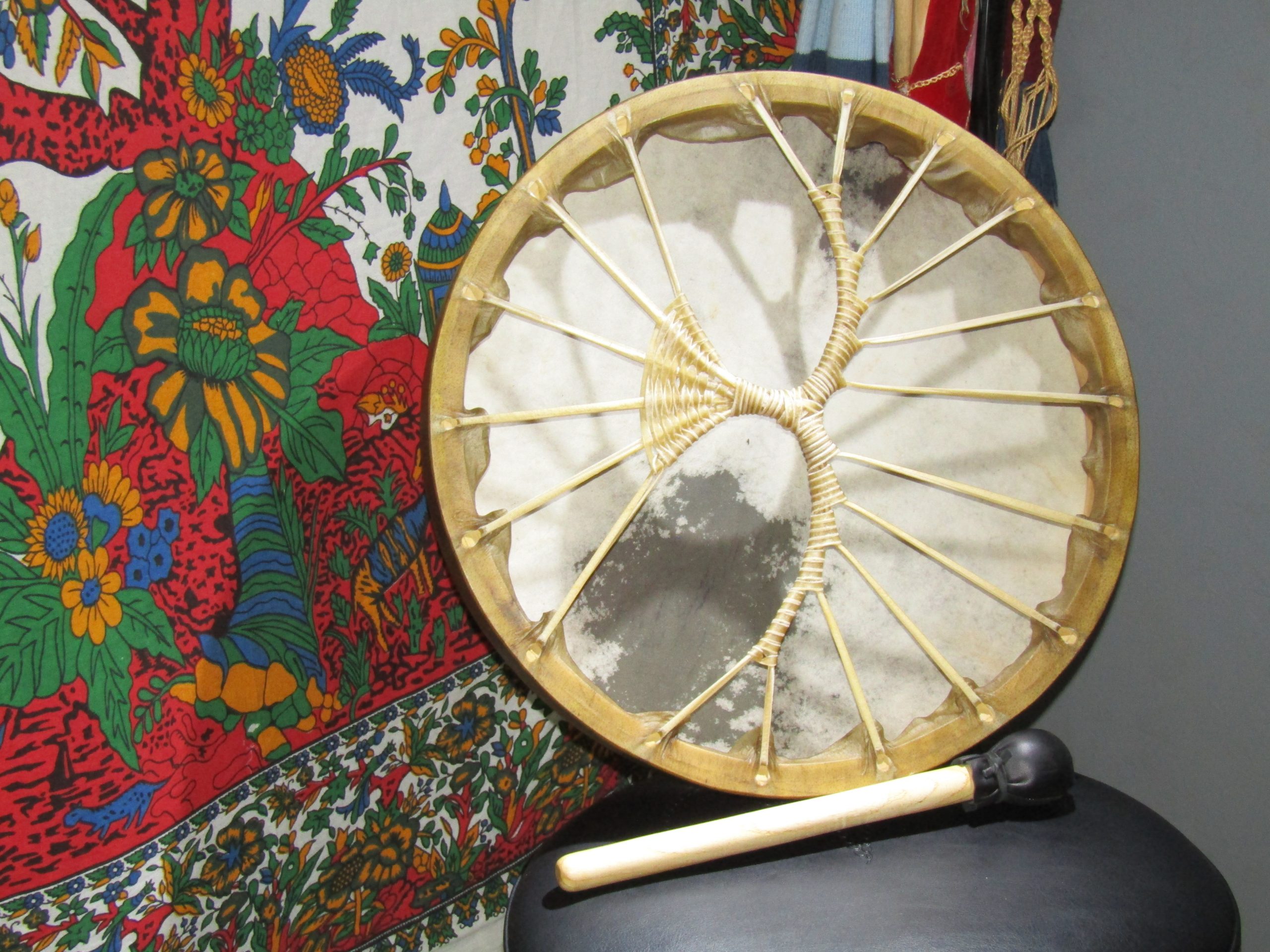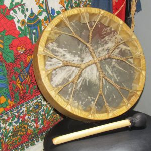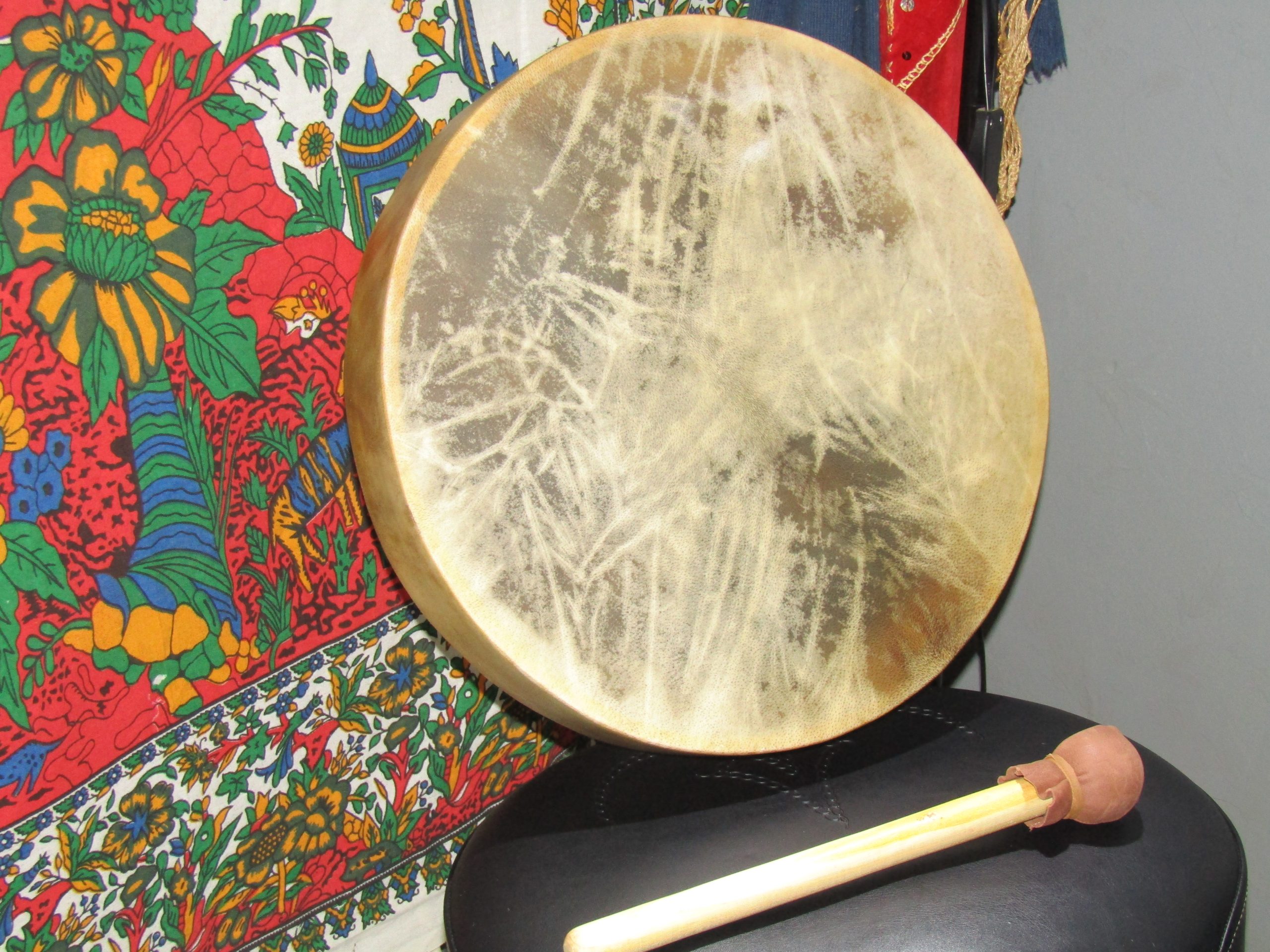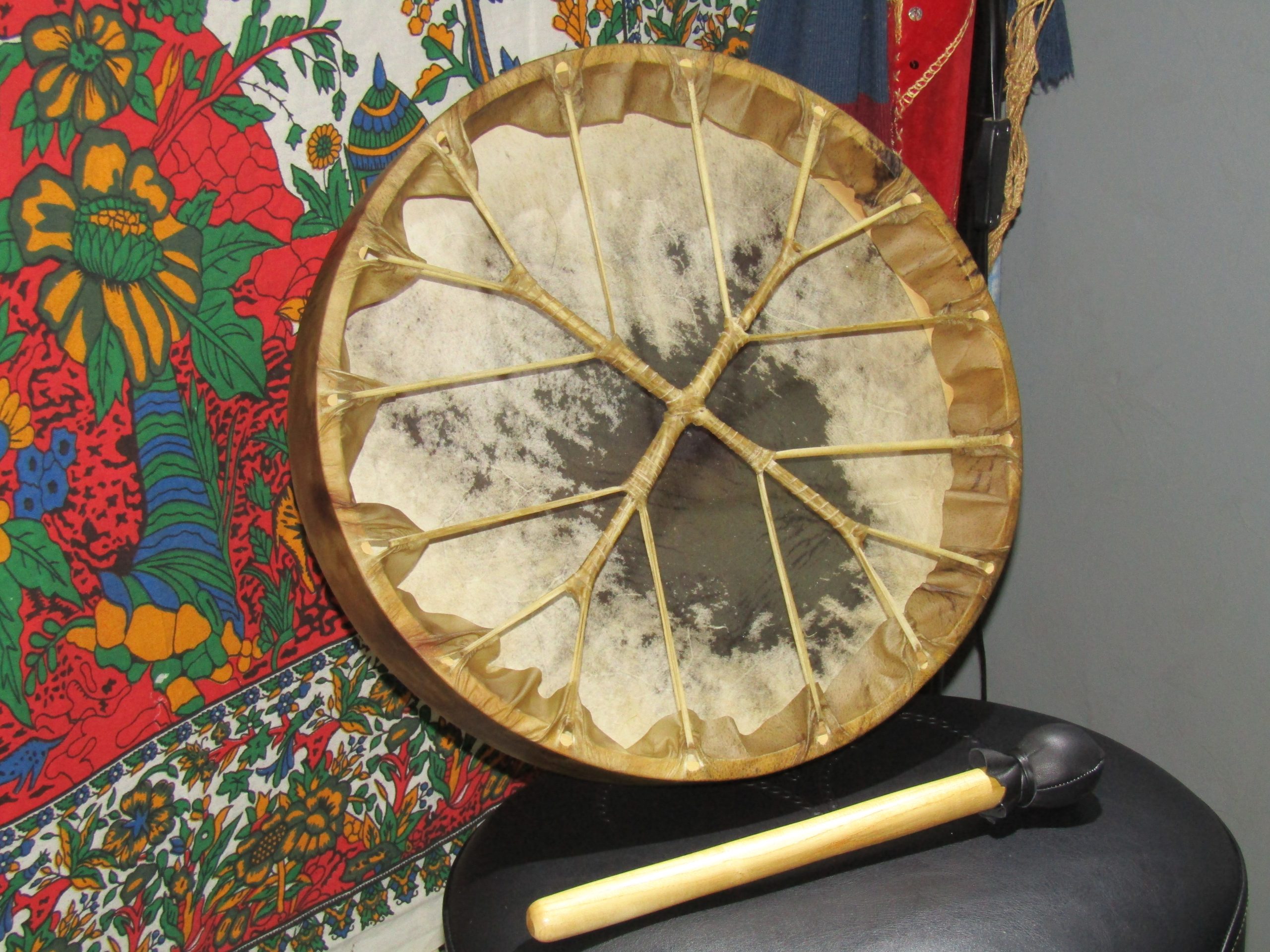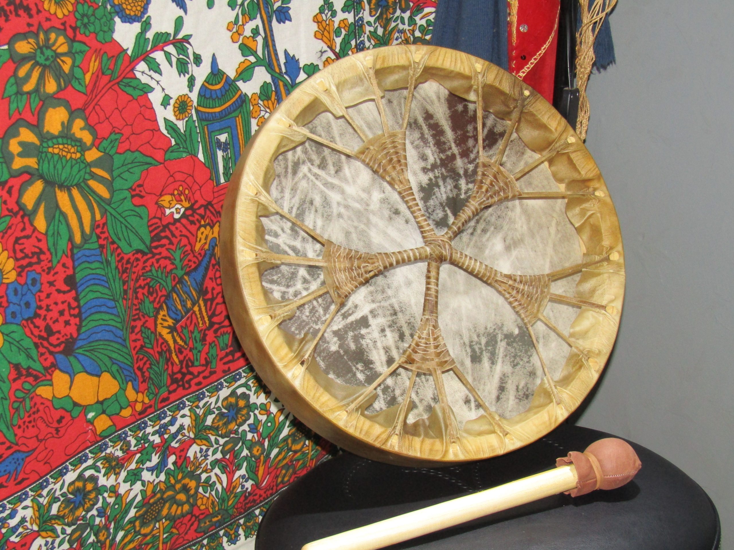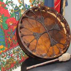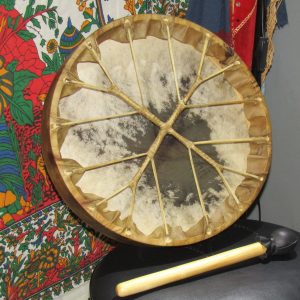 Each drum is crafted with deep respect for nature and traditional methods. The buffalo hide used for the drumhead is ethically sourced from local farms, ensuring sustainability and reverence for the animal. The frame is made from Mulberry wood, valued for its lightweight strength and warm, resonant tone. The drum is hand laced with buffalo rawhide, offering durability and a strong, balanced tension that enhances its deep, grounding sound. To bring life to the hide, we use the same non toxic dyes used for coloring t-shirts, resulting in safe, vibrant, and lasting shades without harming the natural texture of the skin. Every detail reflects mindful craftsmanship from the choice of materials to the final tone creating a drum that carries both spirit and authenticity. If you want to buy a drum please read the returns policy, I’d advise trying it in person first but will post with added post and packaging to your destination. These drums can be viewed being played here. https://youtu.be/gzdTcXB-XM4?si=AhTM9bi-sf-7jJTn