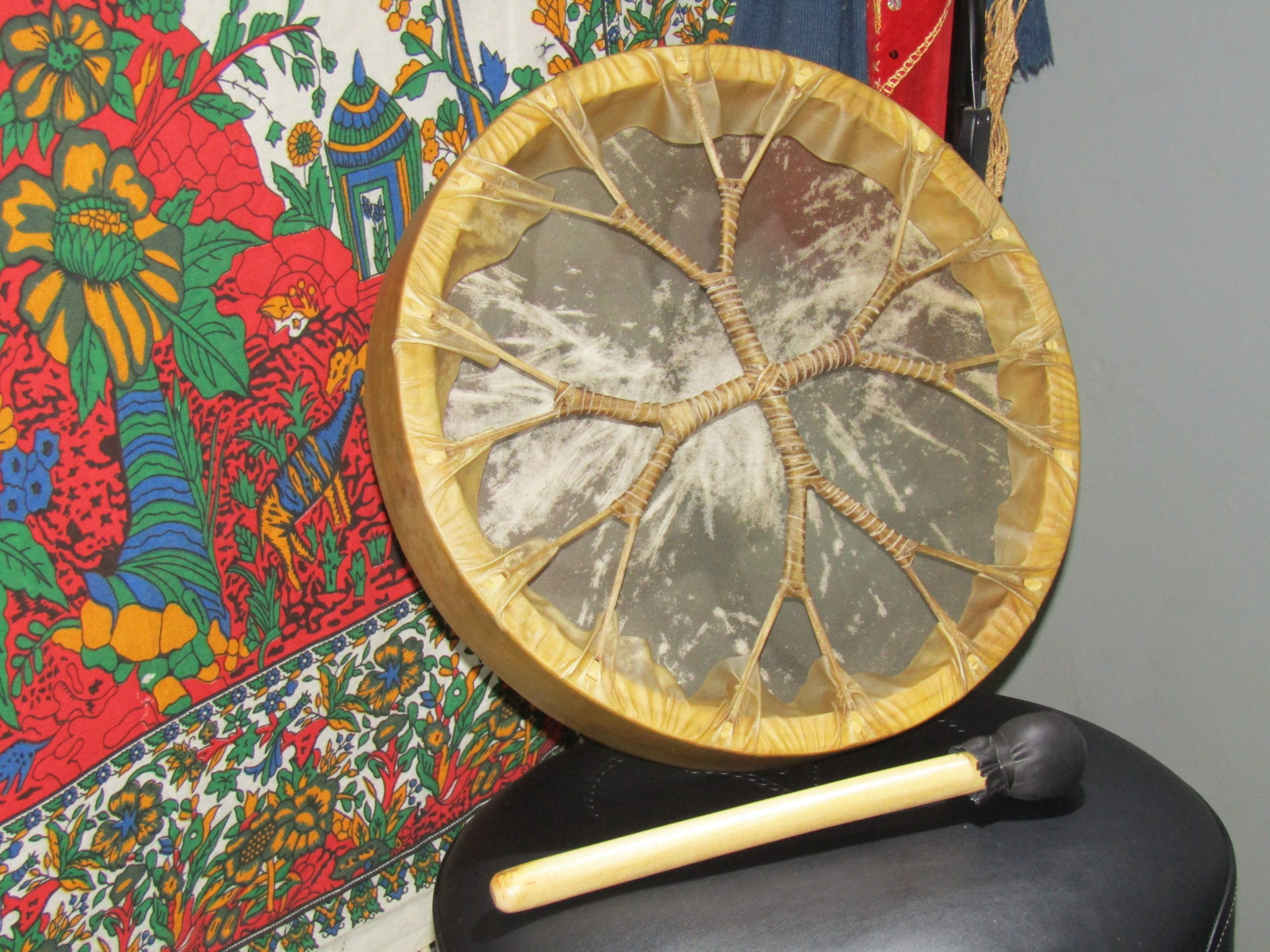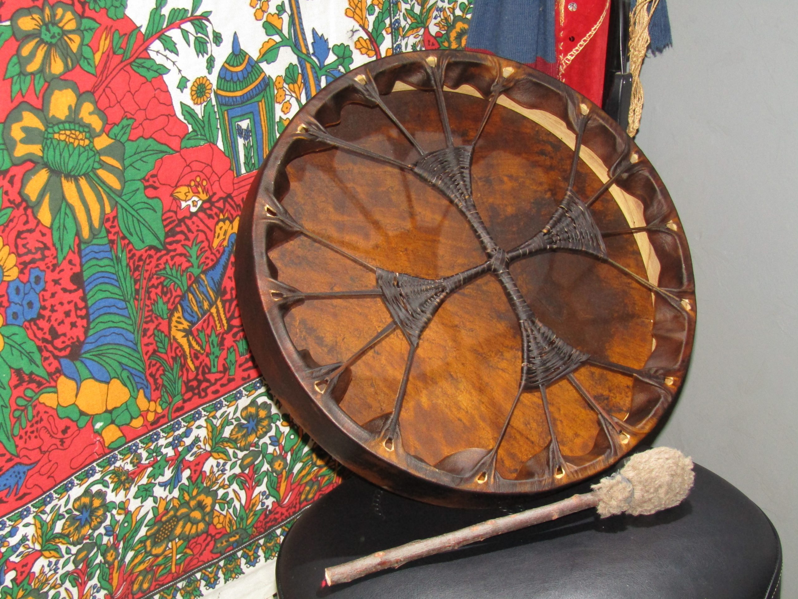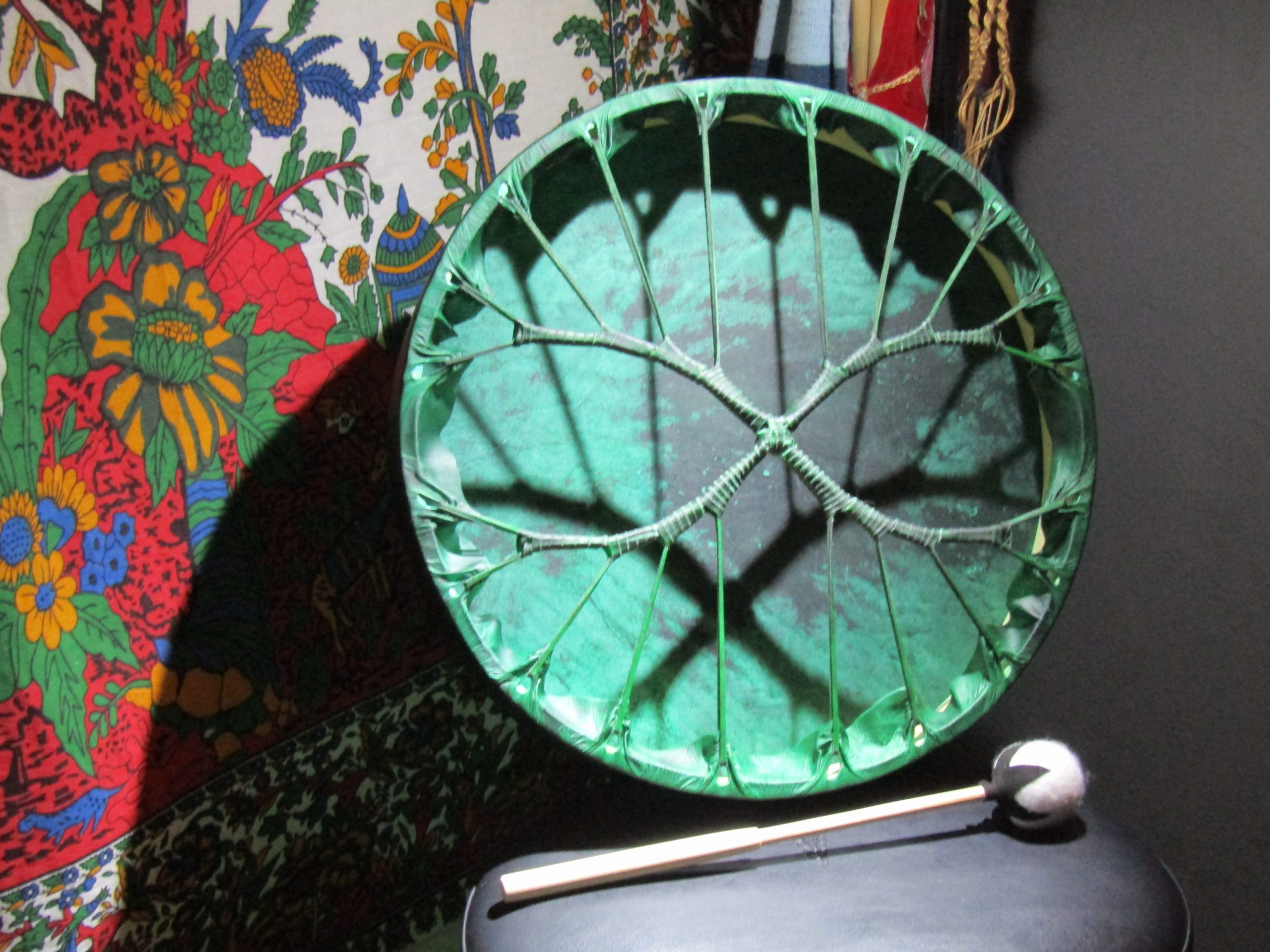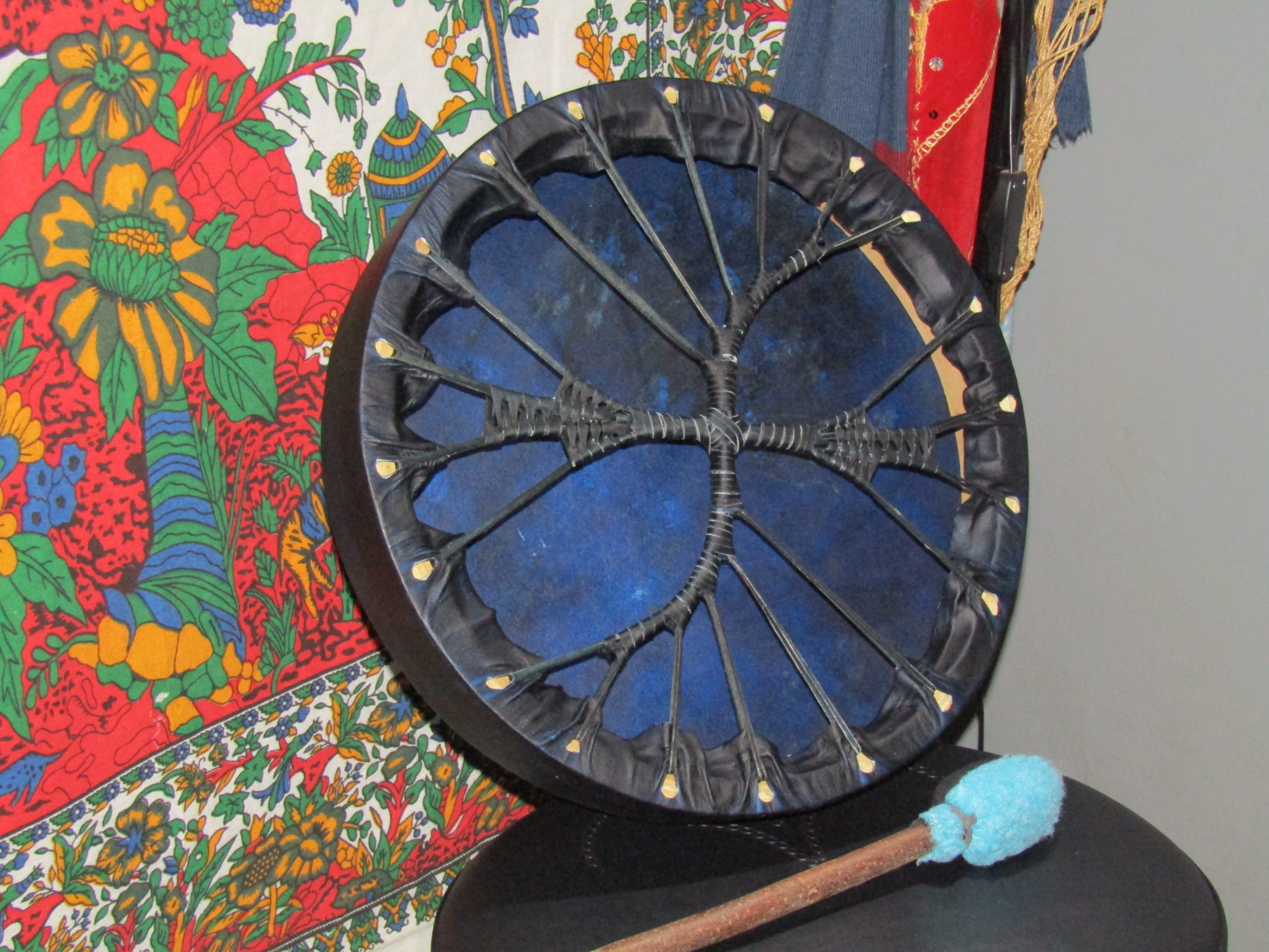Each drum is crafted with deep respect for nature and traditional methods. The buffalo hide used for the drumhead is ethically sourced from local farms, ensuring sustainability and reverence for the animal. The frame is made from Mulberry wood, valued for its lightweight strength and warm, resonant tone. The drum is hand laced with buffalo rawhide, offering durability and a strong, balanced tension that enhances its deep, grounding sound. To bring life to the hide, we use the same non toxic dyes used for coloring t-shirts, resulting in safe, vibrant, and lasting shades without harming the natural texture of the skin. Every detail reflects mindful craftsmanship from the choice of materials to the final tone creating a drum that carries both spirit and authenticity. If you want to buy a drum please read the returns policy, I’d advise trying it in person first but will post with added post and packaging to your destination. These drums can be viewed being played here. https://youtu.be/gzdTcXB-XM4?si=AhTM9bi-sf-7jJTn