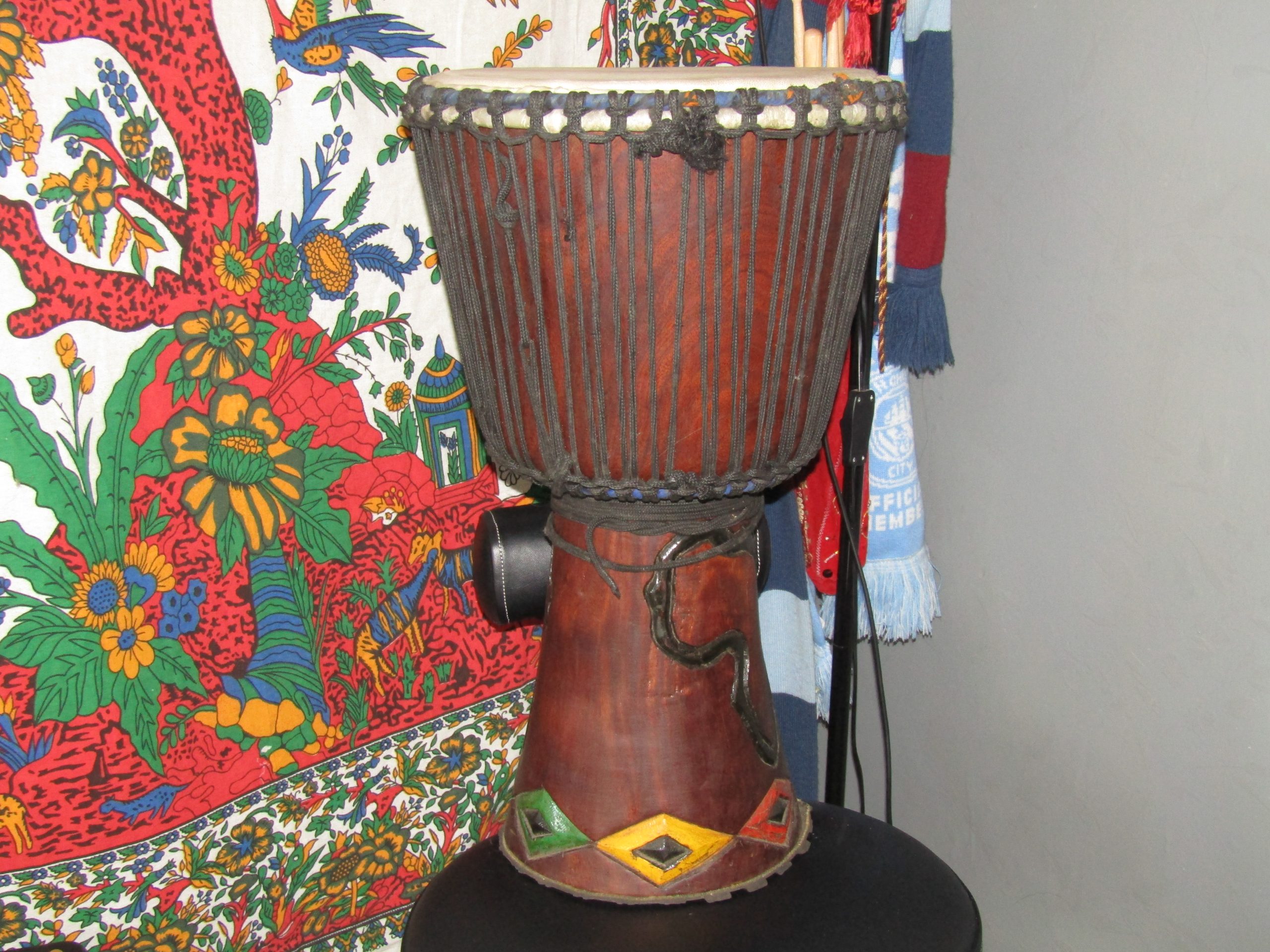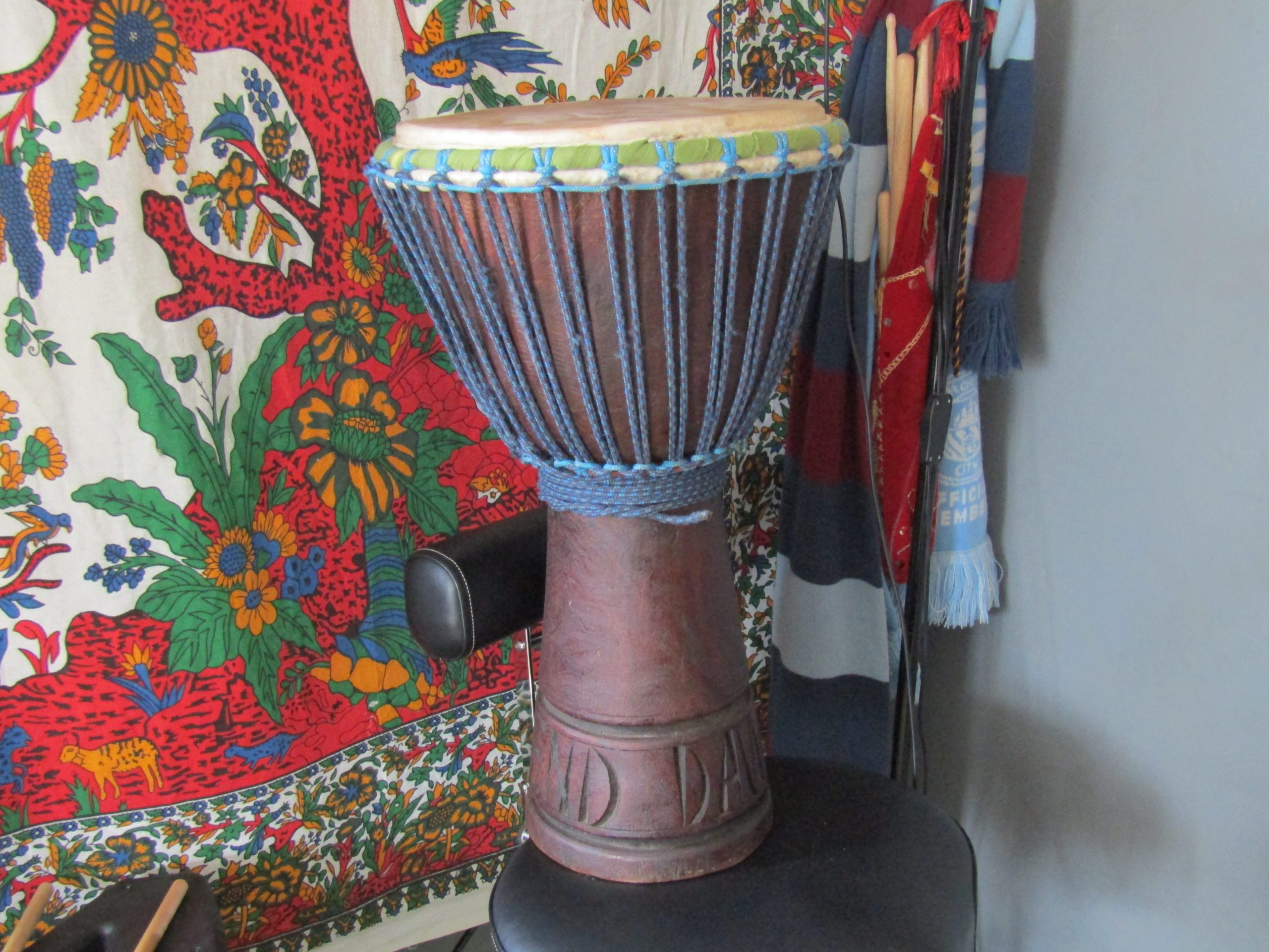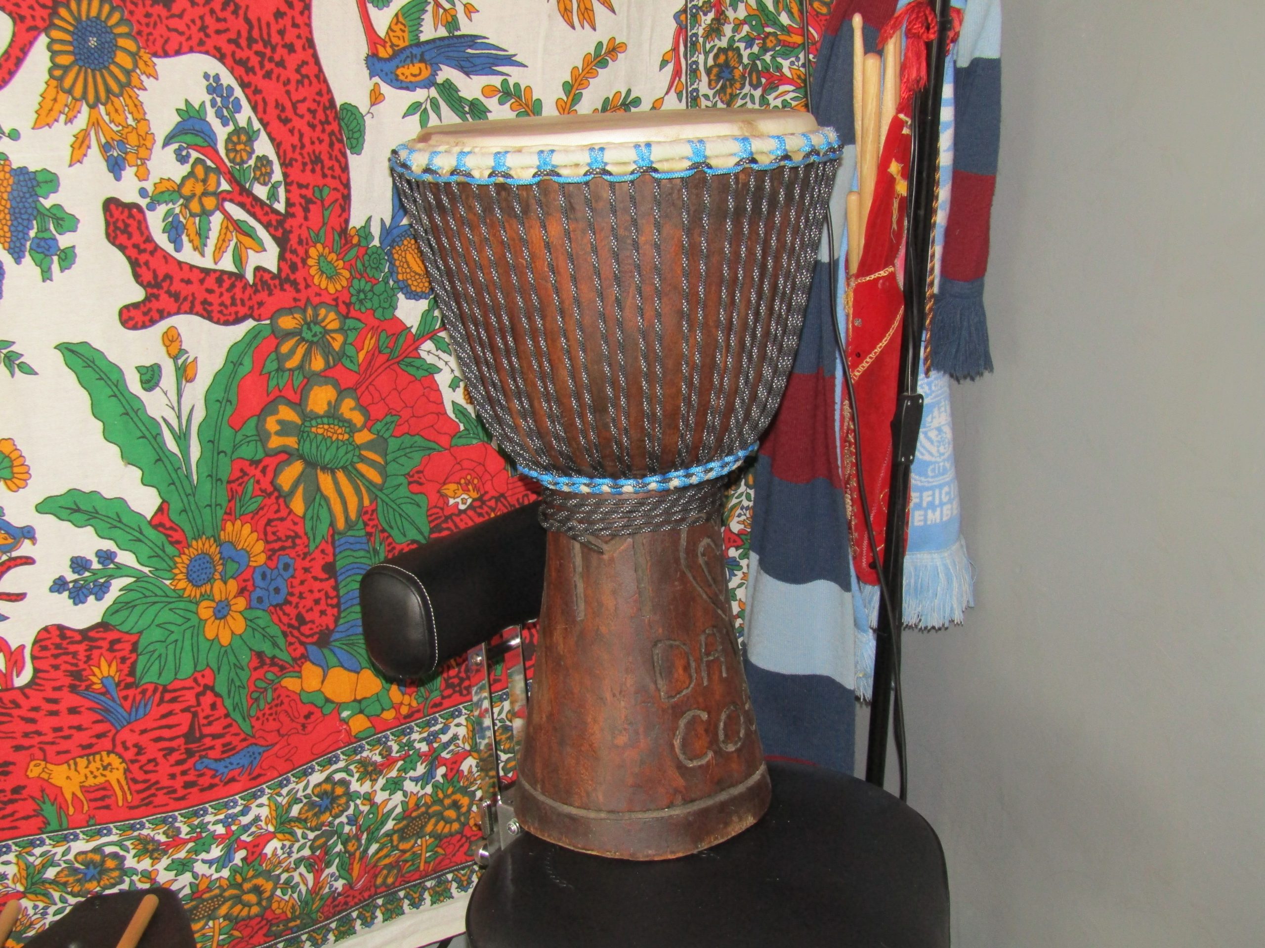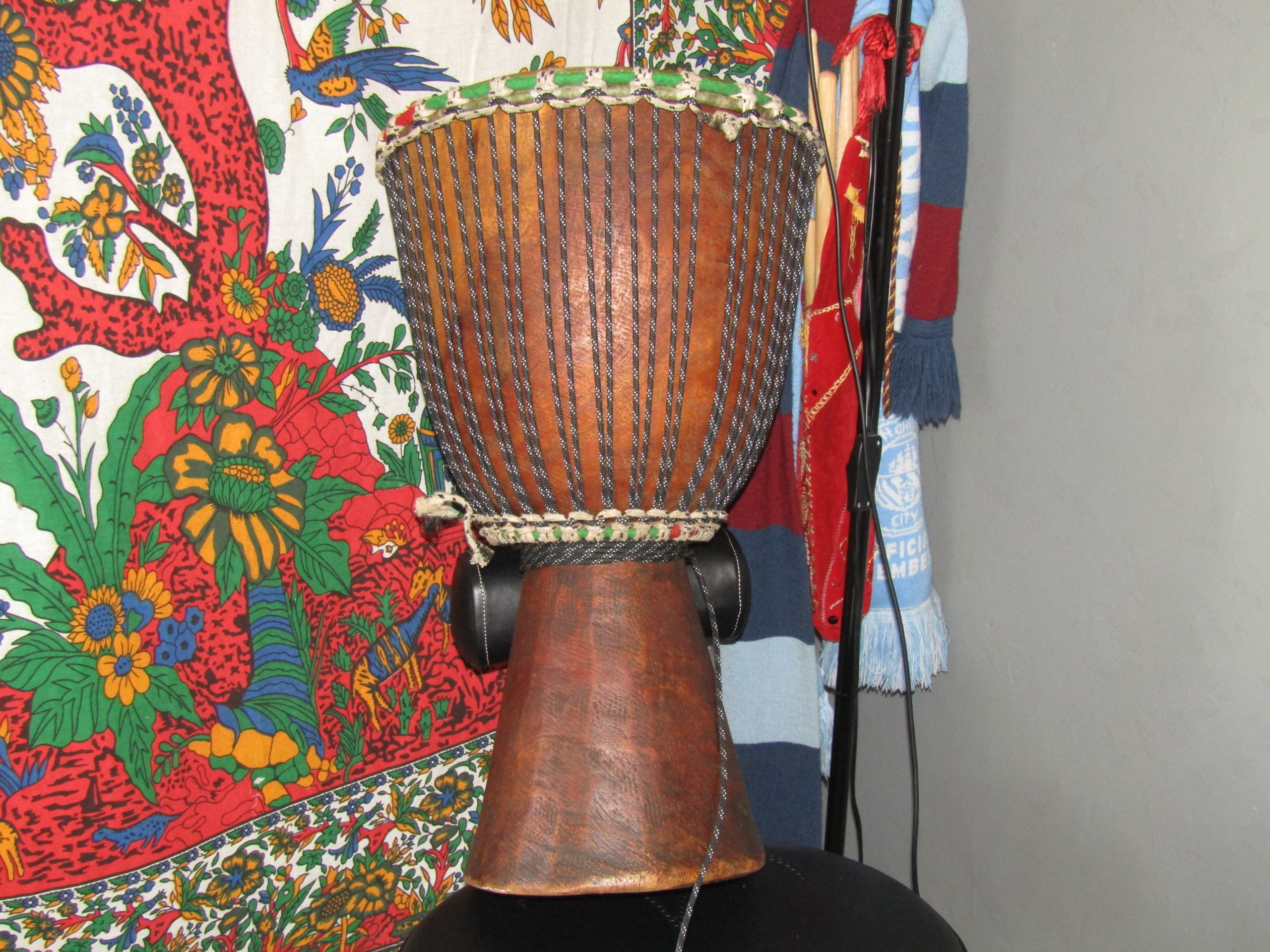 Also pictured below are four quality djembes completely refurbished, re-skinned with new rope and rings.